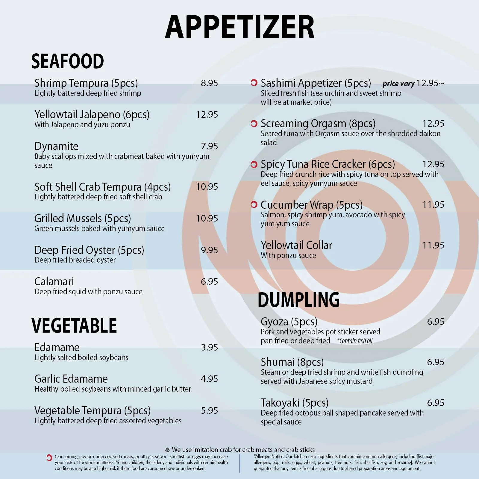 SUSHIMON / Las Vegas MENUAYCE | Beverage | Combo | Lunch | Sushi & Rolls | Appetizer & Other | To GoAppetizer & Other Back to Restaurant Top